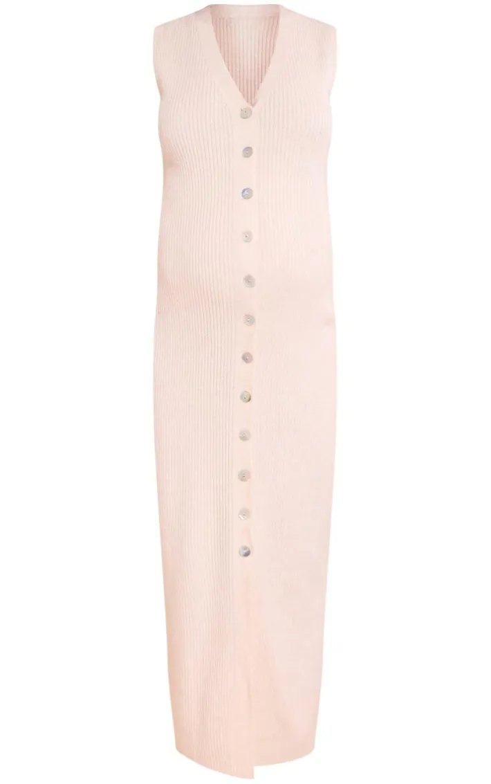 Make everyday styling look effortless with this maternity cream knit sleeveless button up maxi dress. Brought to you in a cream hue knit material with a sleeveless design, button up detailing and a flattering maxi fit, how can you resist? Style this maxi dress with a mini bag and gold accessories for a simple yet chic look we’re loving.
