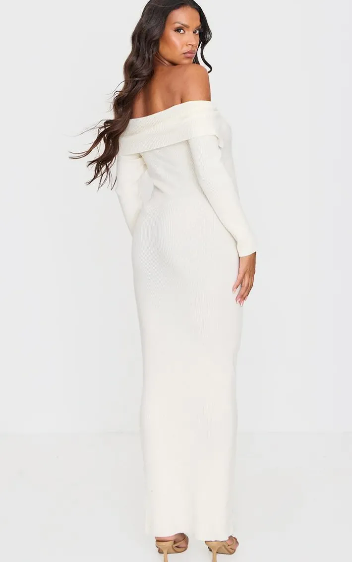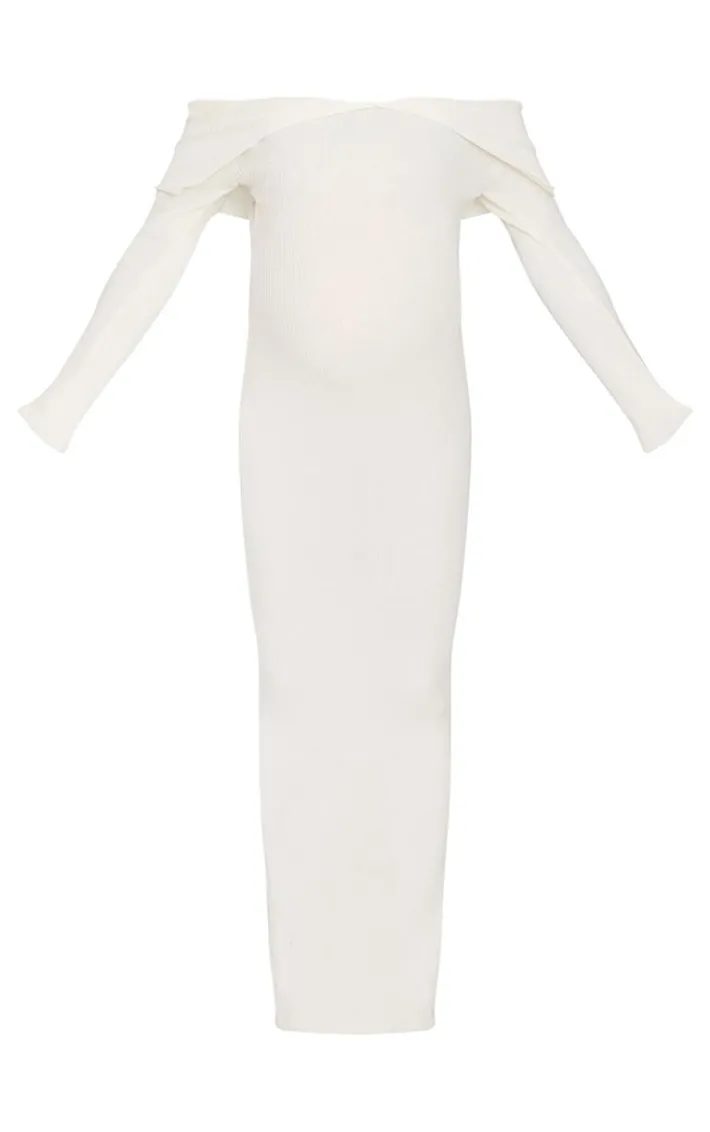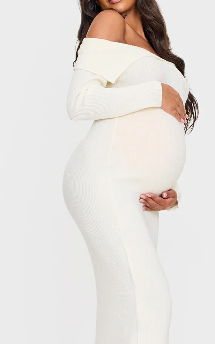 Look and feel your most confident in this maternity cream off the shoulder rib knit maxi dress. Brought to you in a must have cream hue, with an off the shoulder design and cosy rib knit material, how can you say no? Simply style with a pair of nude heels and simple accessories to finish off the look.