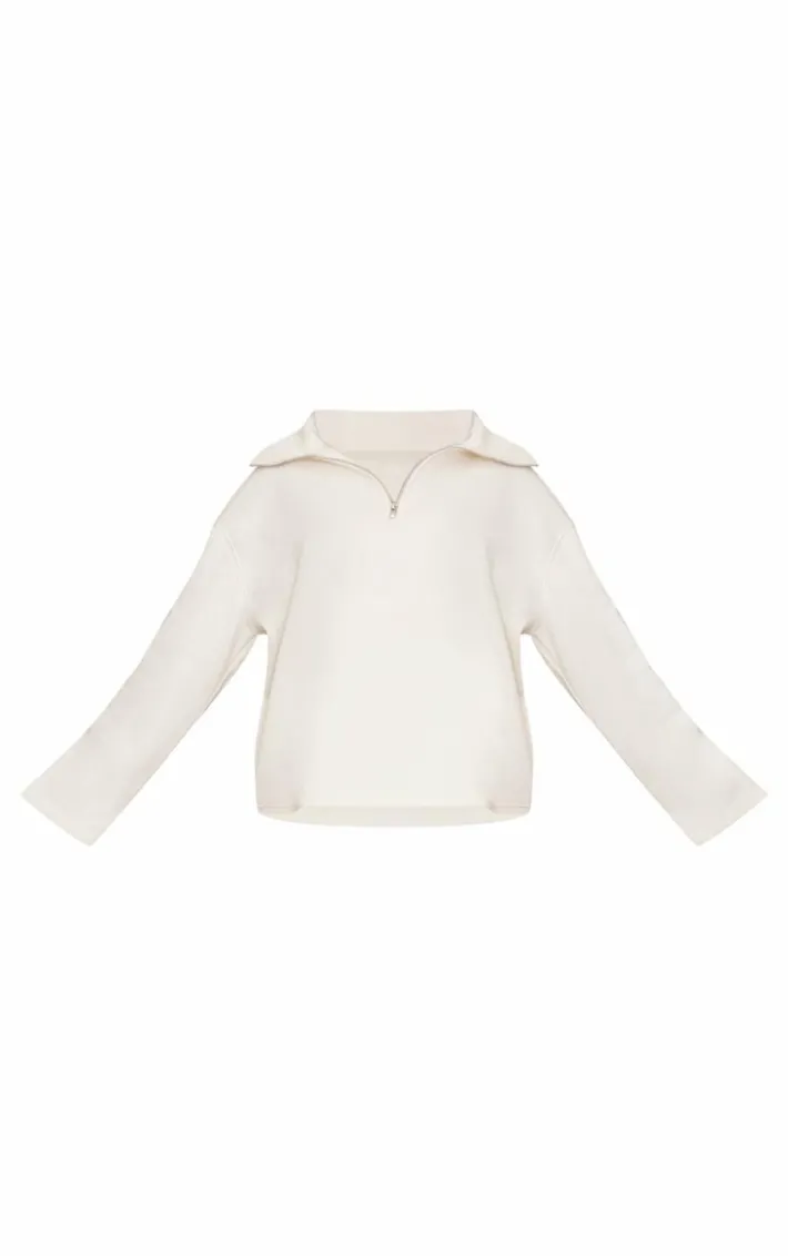 Elevate your everyday with this maternity cream quarter zip long sleeve sweatshir. Brought to you in a cream hue material with a quarter zip fastening and long sleeves, this Sweatshirt is a must have. Style with the matching sweatpants, fresh kicks and simple accessories for an off-duty look we can’t get enough of.