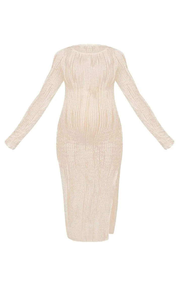 Make weekend styling simple with this unreal maternity cream textured midi dress with side split, it is sure to be your new go to whatever your plans. This maternity dress features a cream textured material with a side split design and a figure-flattering fit, how could you not be in love? Style this women’s midi dress with clear slip-on heels and gold hoop earrings for a dreamy date night fit.