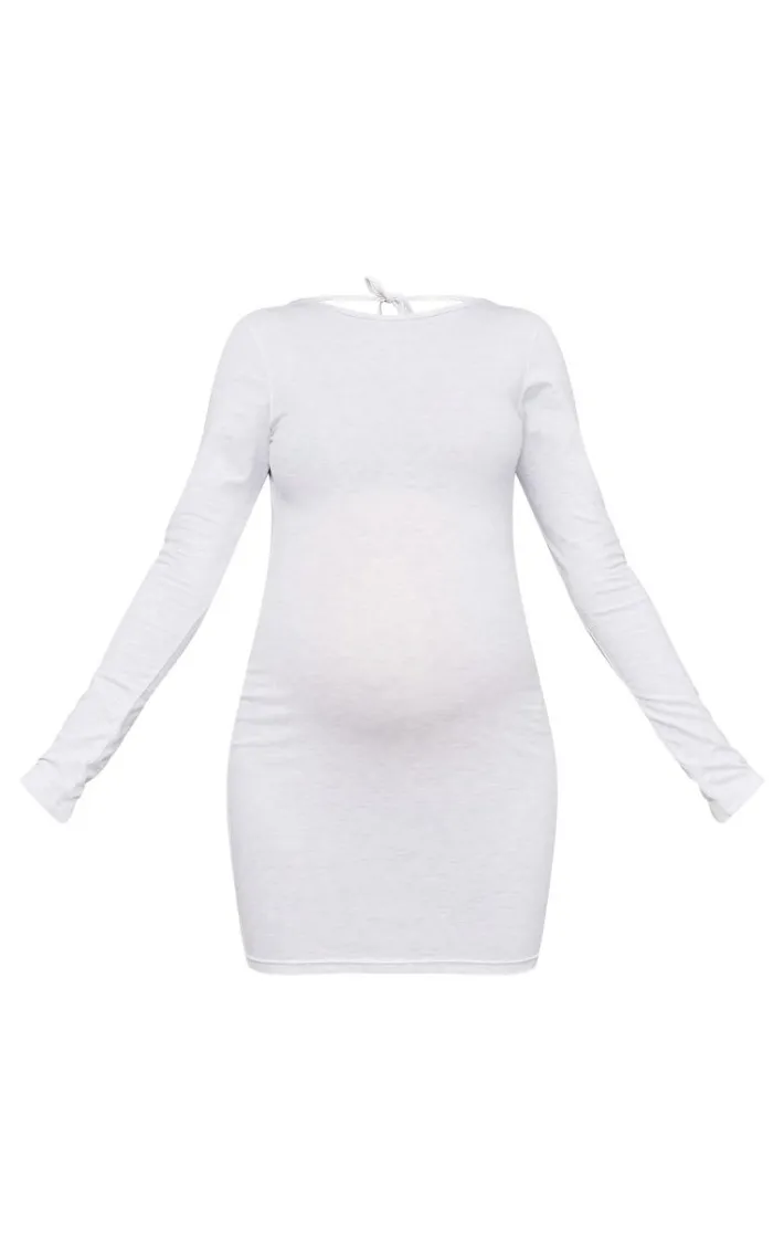 Make styling easy this season with this maternity grey marl cotton tie scoop back mini dress. Brought to you in a grey marl hue cotton material with a tie detail and scoop back design, this mini dress is all the new you need. How can you resist? Style with fresh kicks and simple accessories for a look like no other.