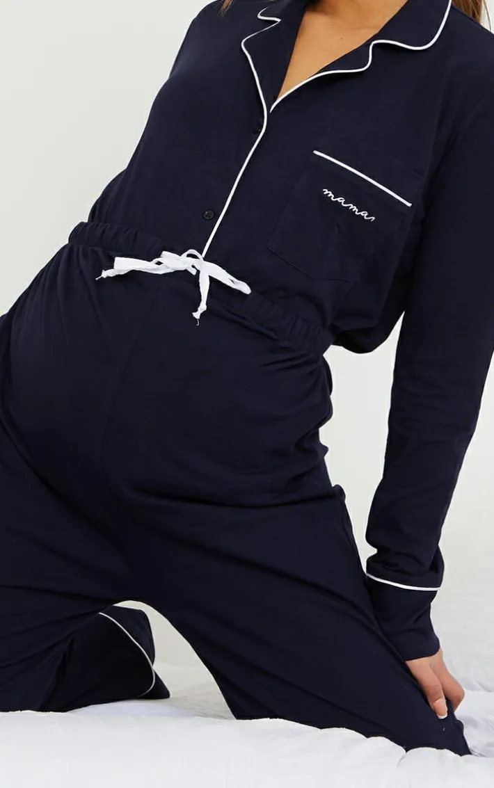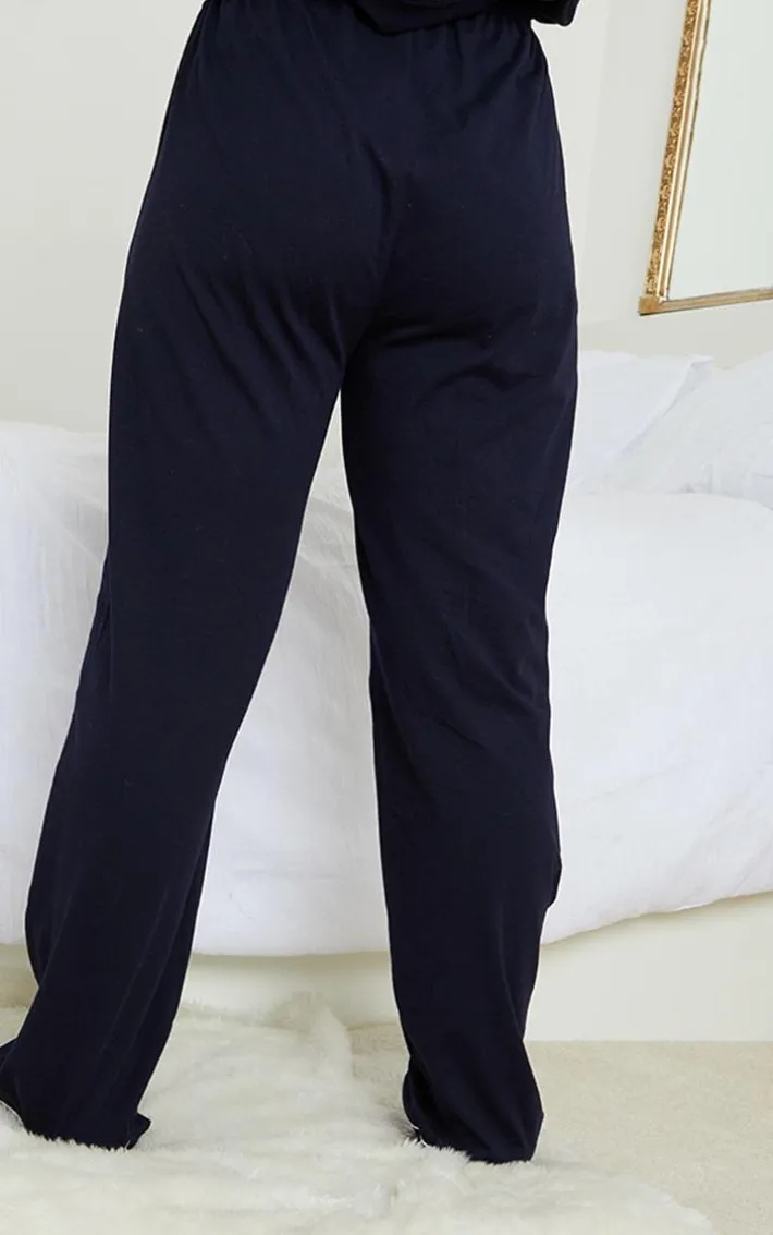 These maternity navy wide leg PJ pants are the perfect addition to your off-duty wardrobe. Brought to you in a navy hue material with a drawstring bump waist and wide leg fit, team with a matching PJ top for an effortlessly chic night in.