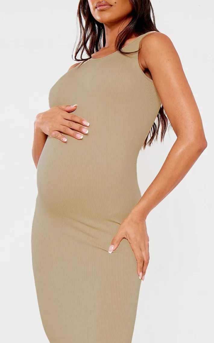 Show off your shape this season in this maternity pale khaki snatched rib scoop neck bodycon maxi dress. This unreal maxi dress is made from a pale khaki material with a snatched rib scoop neck design, that will have you feeling confident. With a bodycon fit, this maxi dress will have you being center of attention wherever you go. Simply style with a pair of chunky sandals and your fave gold hoops to complete the look we are loving.