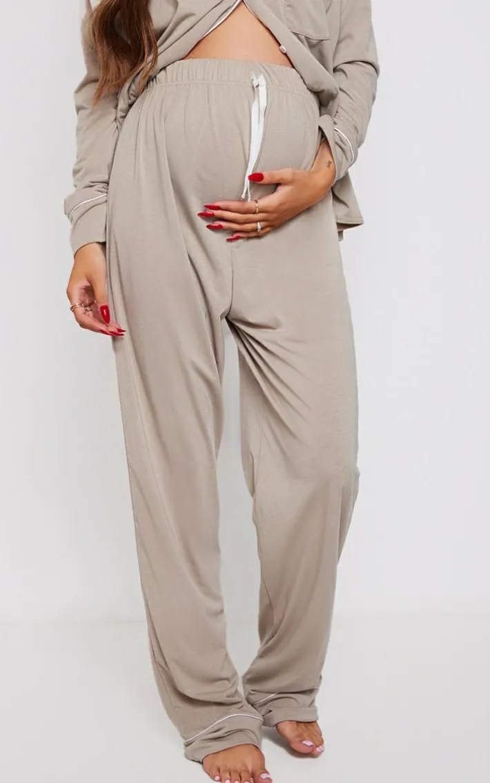 Add some comfy vibes to your wardrobe with these maternity sand wide leg PJ pants. Brought to you in a sand material with a wide leg fit, perfect for those nights in. Team these PJ pants with the matching top and your fave slippers for a look we are obsessing over.