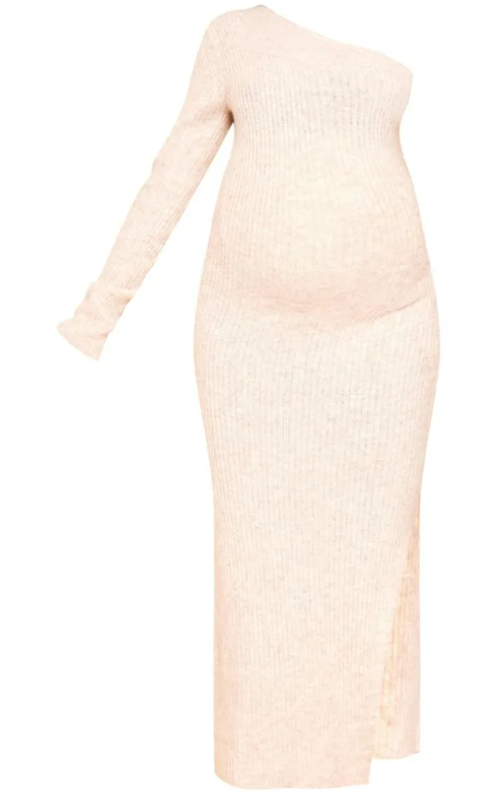 Found some last-minute weekend plans and need an unreal ‘fit? Then we have you covered with this styling staple, a maternity stone luxe knit one sleeve midaxi dress. With a stone luxe knit material with a one sleeve design and a midaxi length, we’re obsessed. Work your styling techniques and add a clear high heels and accessories for a weekend-worthy finish that will gain all the likes..
