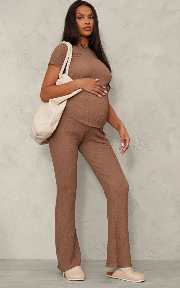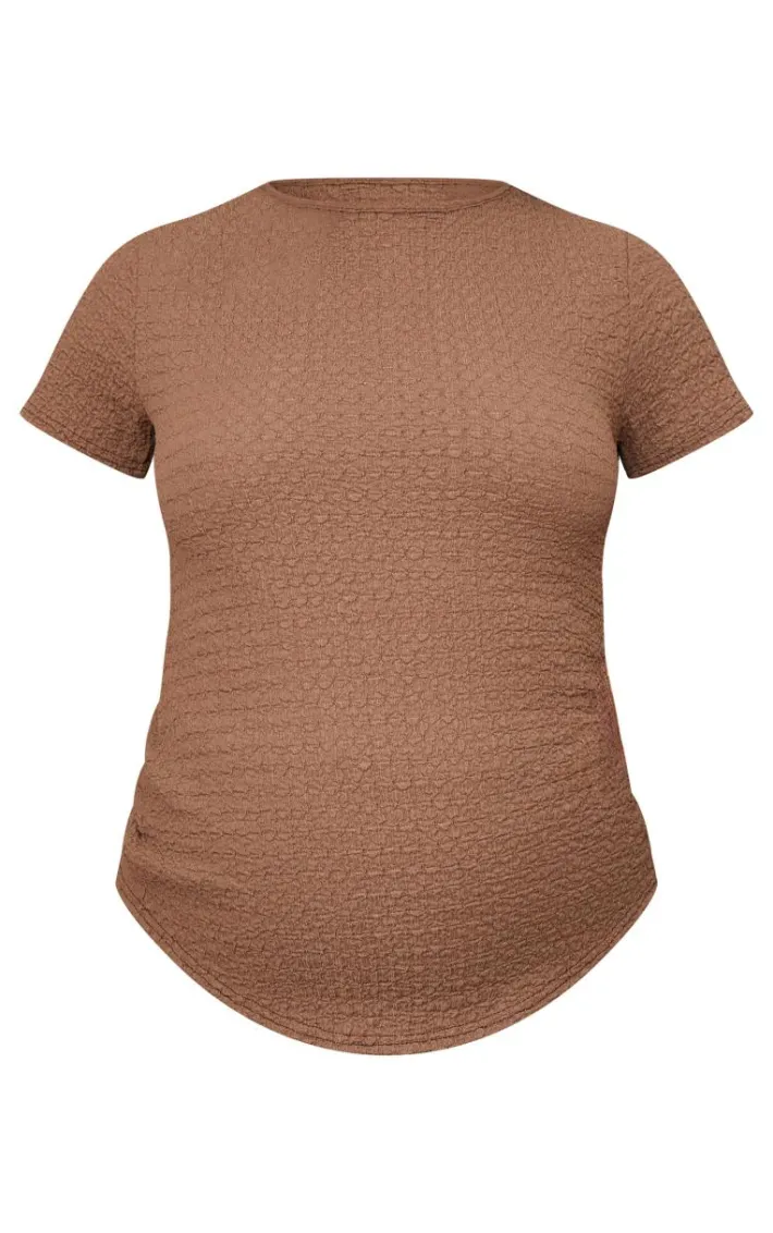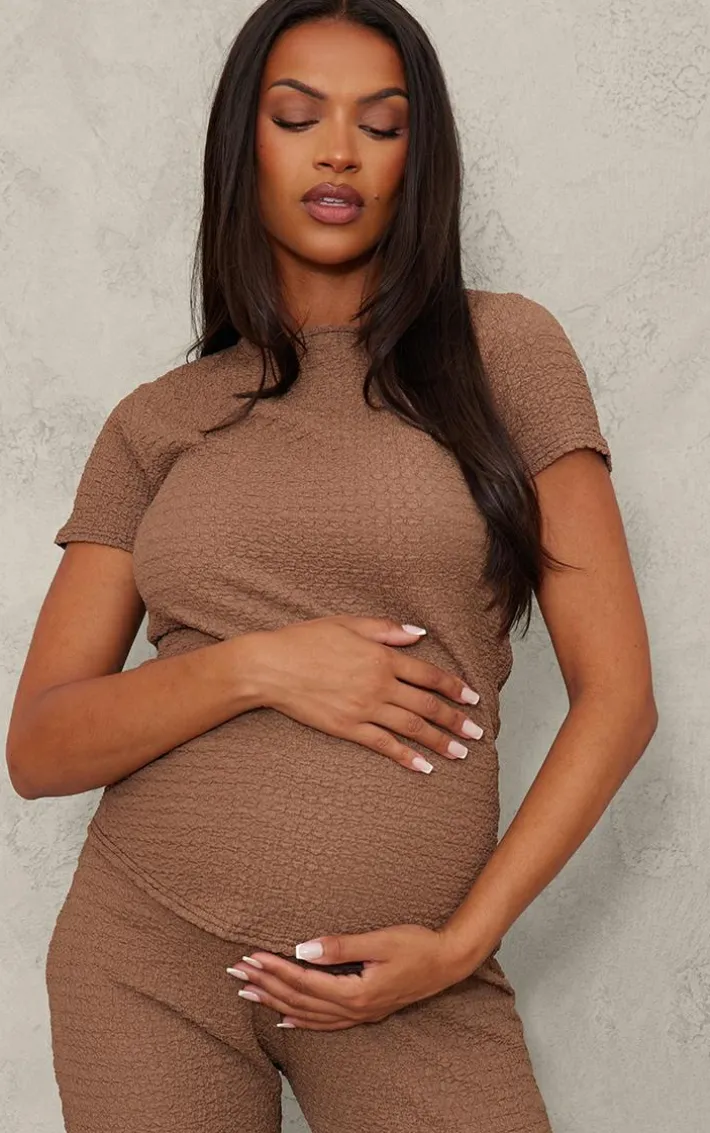 Switch up your maternity style game with this maternity taupe textured short sleeve top. Brought to you in a taupe hue textured material with short sleeves, what more could you want? Style this taupe top with the matching pants, slip-on shoes and simple gold accessories for a simple yet chic look we’re loving.