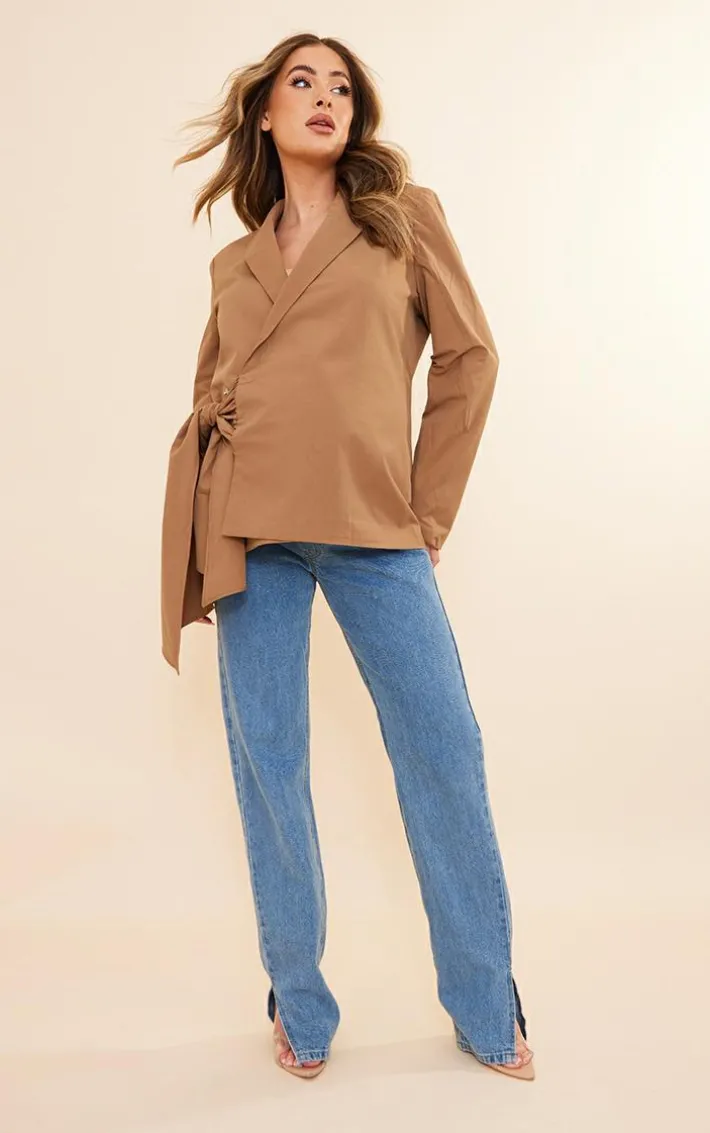 Look all kinds of chic in this maternity taupe wrap over blazer. This blazer is brought to you in a taupe hue that will add some glam to your neutral collection. With a wrap over design, this blazer can be taken from day to night instantly. Style with your go-to jeans and a pair of clear heels for an effortlessly chic combo we just can’t get enough of.