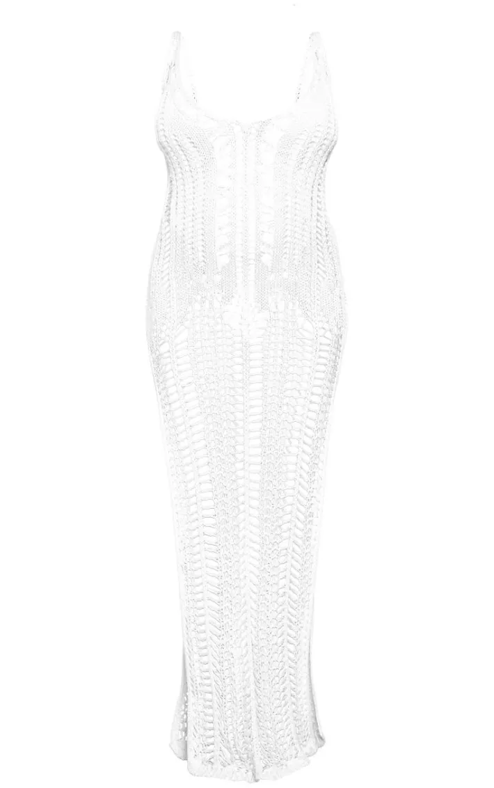Make a statement in this maternity white open crochet knit V neck maxi dress. Brought to you in a white open crochet knit material with V neck design and a maxi length, how can you say no? This maternity dress is perfect for vacay styling and beyond. Simply add sandals and simple gold accessories to complete the look.