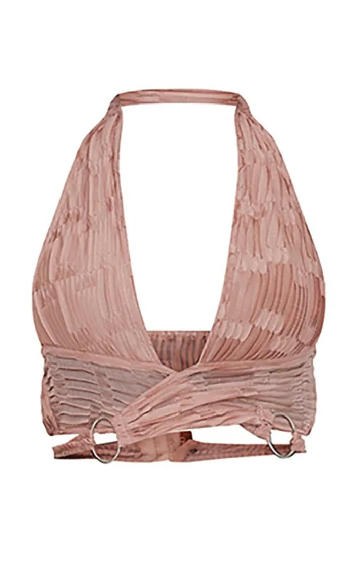 This mauve plisse ring detail wrap around crop top is here to give your new season wardrobe the refresh it needs. Brought to you in a mauve plisse material with ring detailing, a wrap around design and a cropped length, how could your resist? To earn all the style points simply pair this with the matching bottoms, high heels and accessories for an insta-worthy combo.