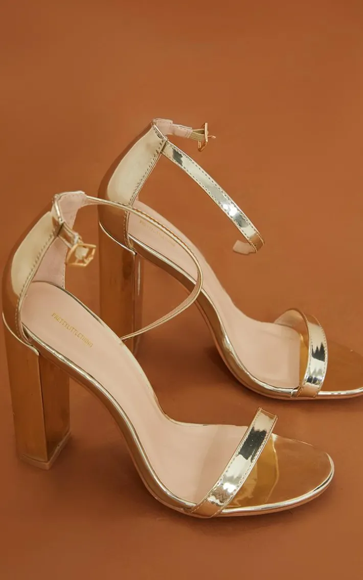 These heels are essential for any occasion. Featuring a gold material with a block heel and buckle fastening, we are obsessed