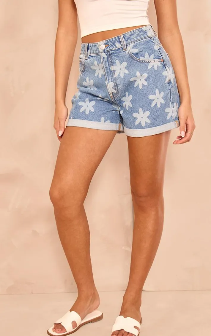 Amp up your denim game this season with these mid blue wash blurred floral print denim shorts. Brought to you in a mid blue wash denim material with a blurred floral print design, these shorts are a must-have. It’s a yes from us. Style with a bandeau top and your fave sandals for a chic finish we can’t get enough of.