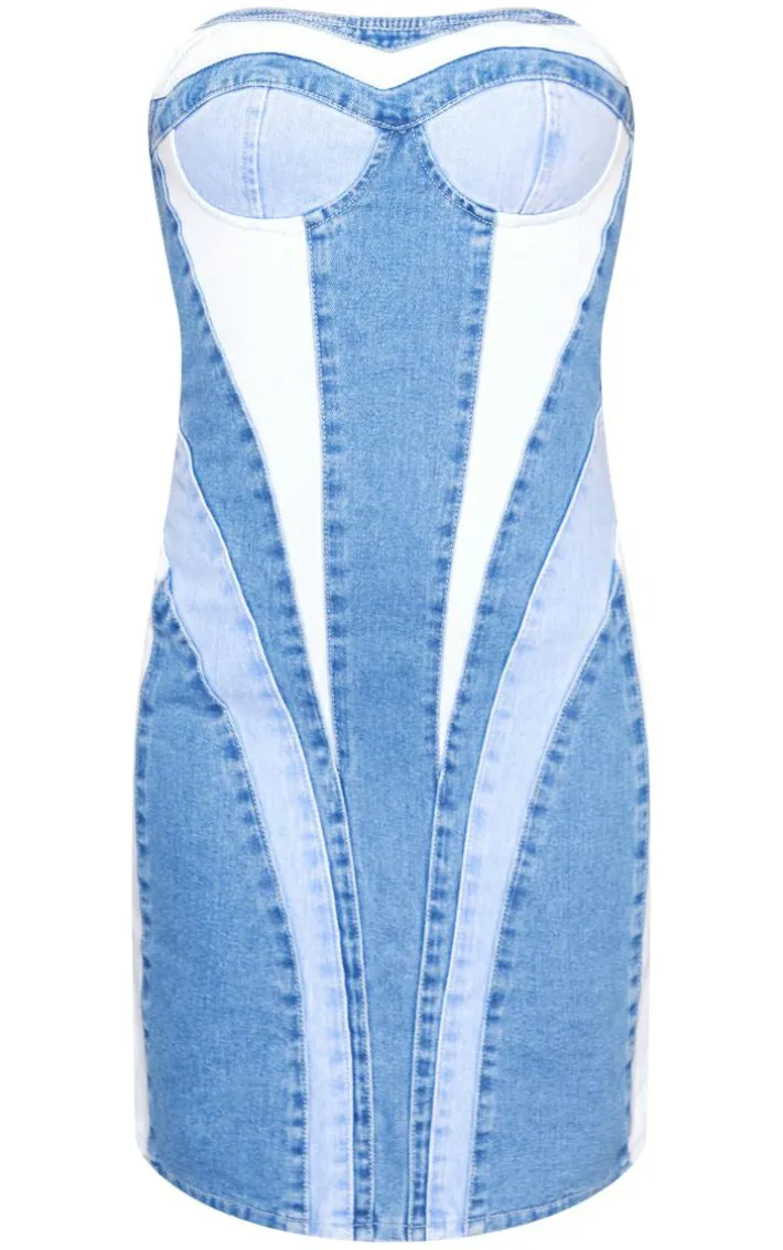 Take on your weekend the right way with this statement mid blue wash contrast panel denim mini dress. Made from a mid blue denim material, this dress is everything we’re loving and more. With It’s figure-hugging fit this dress has a contrast panel detail and a min length, this dress is sure to hug you in all the right places. To complete the look style this unreal mini dress seamlessly with some mule heels and your fav accessories for a look that will secure you all the likes.