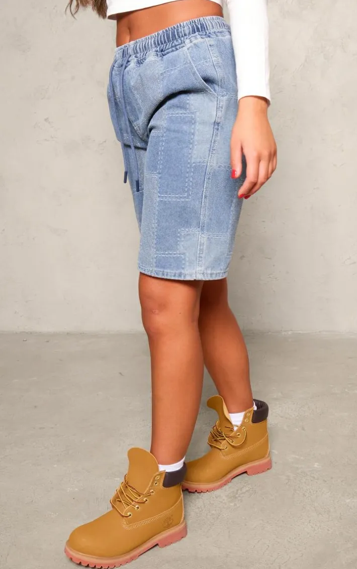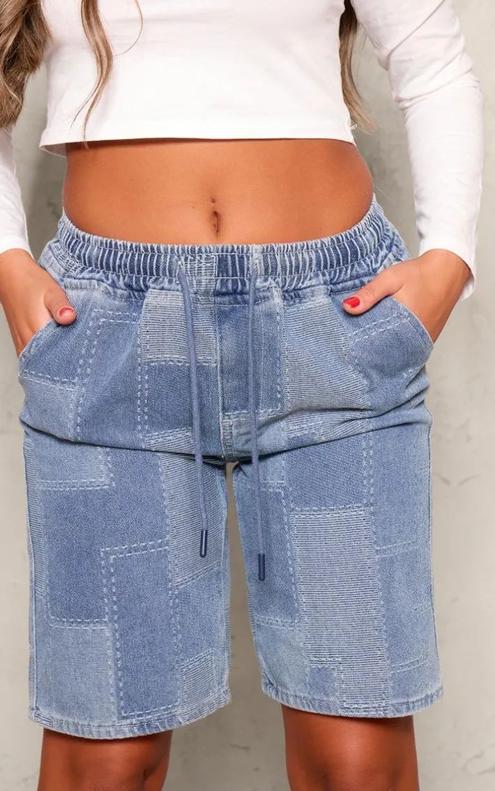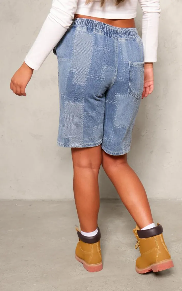 Switch up your new season style game with these mid blue wash textured longline denim shorts. Brought to you in a mid blue wash denim material with a textured design and a longline fit, how can you resist? Style these denim shorts with a crop top, chunky boots and gold accessories for a fierce off-duty ‘fit like no other.