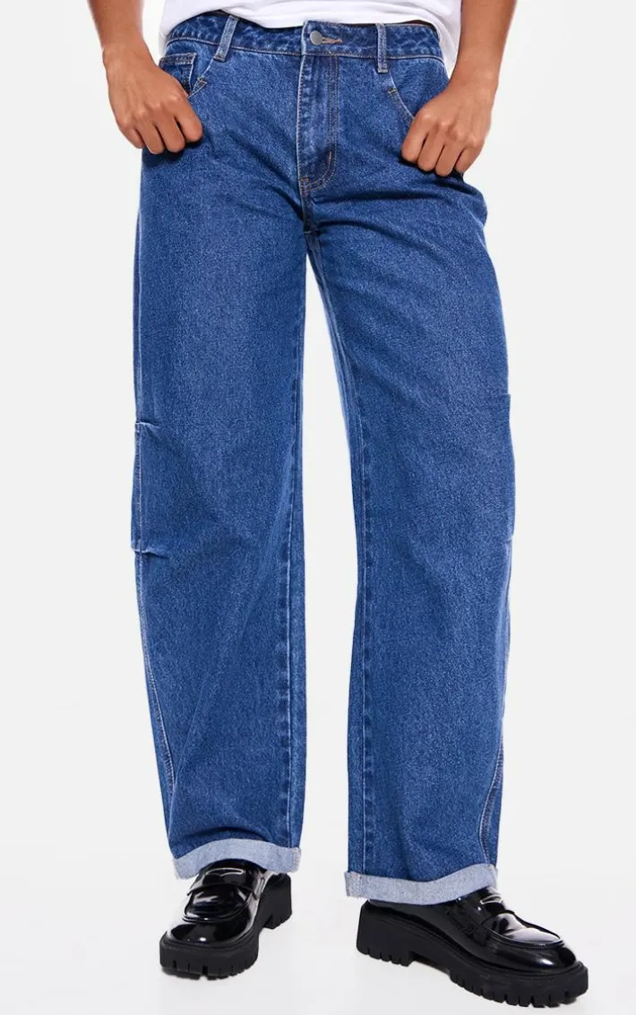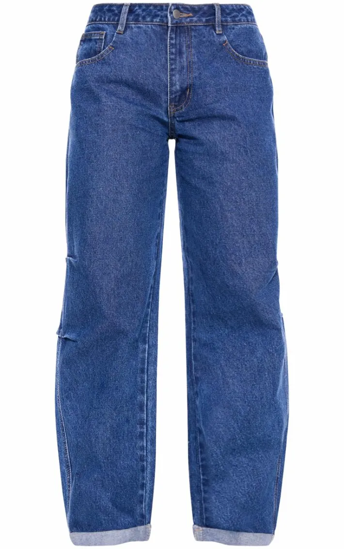 Switch up your denim collection with these mid blue wash turn up hem barrel style jeans. Brought to you in a mid blue wash hue, with a turn up hem and barrel style, these are guaranteed to be your new go-to. Pair these with a white vest top, leather look shoes and a jacket for a put together finish.