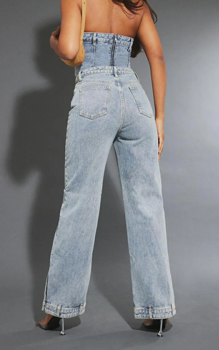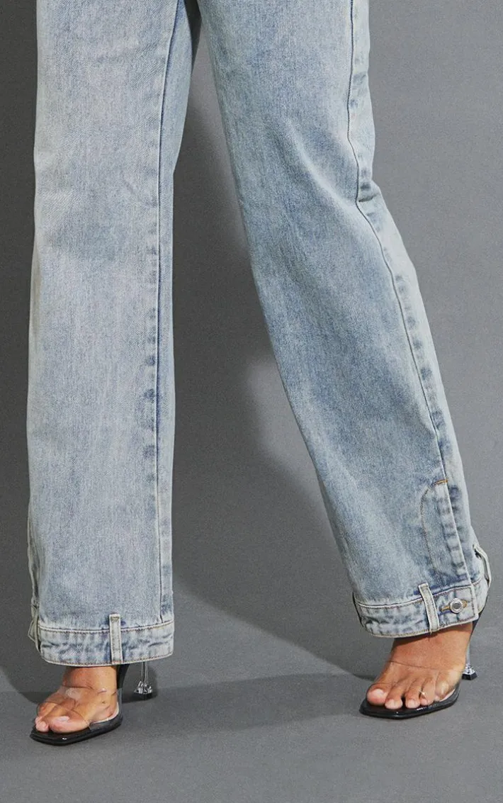Your new fave piece has finally arrived with these jeans. Featuring a mid blue wash denim wash material with a waistband detail hem and a staight leg fit, what’s not to love? Pair with your dreamy high heels and accessories to complete the look.