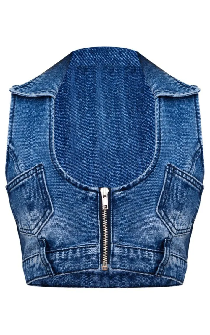 Add all the drama to your new season wardrobe with this mid blue wash zip through denim top. Made from a mid blue wash denim material with a zip through design and a cropped length, this denim top is sur to make heads turn. It’s perfect paired with blue denim jeans, high heels and your go-to accessories for a weekend worthy combo that all the s will love.