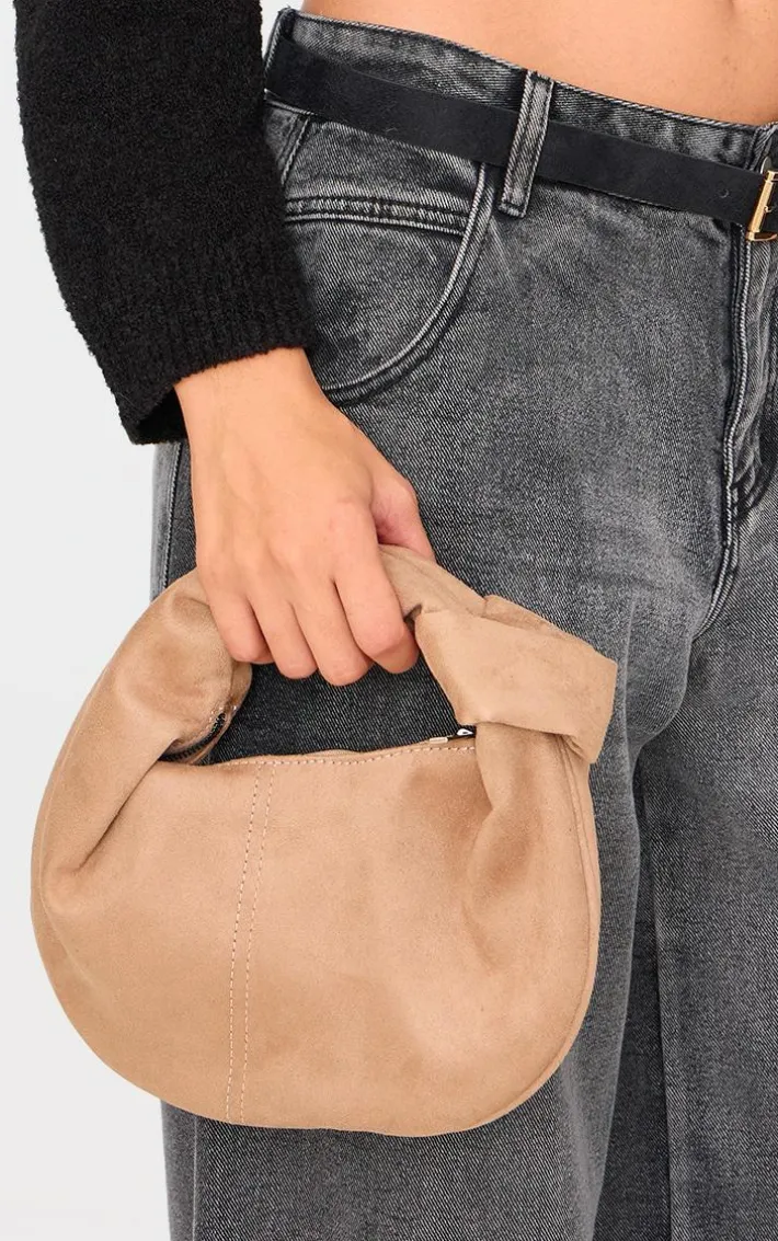 Bring some faux suede feels to your outfit of the day with this mink faux suede knot handle shoulder bag. Made from a mink faux suede material with a zip fastening and knot detailing, what’s not to love? Simply style this faux suede bag with any look for the perfect finishing touch.
