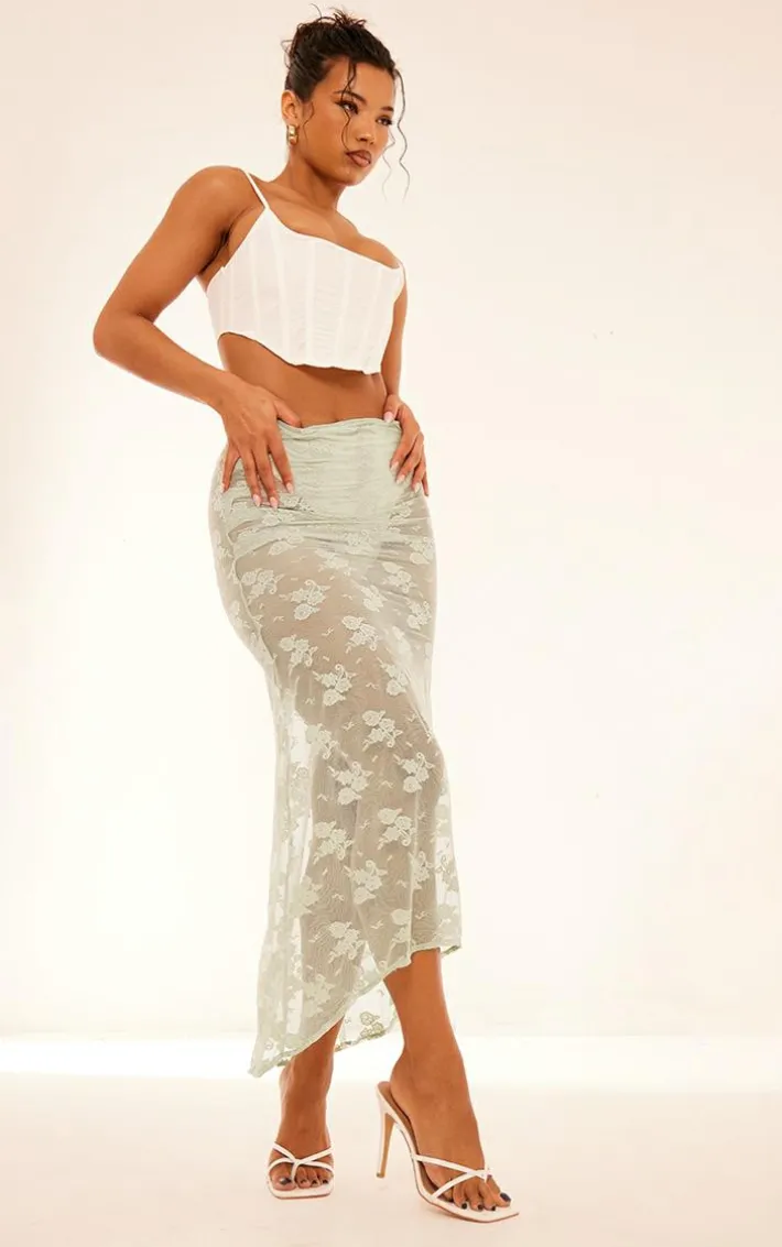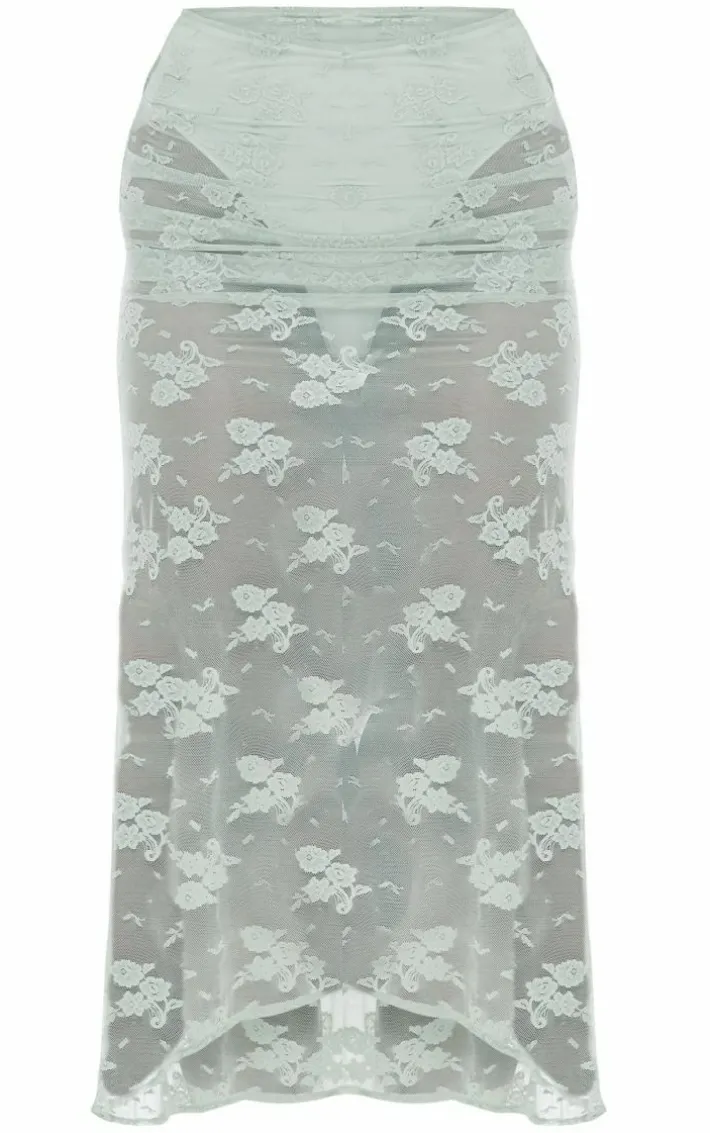We can’t get enough of this dreamy mint floral lace panties insert handkerchief hem maxi skirt , you’re sure to be earning all the compliments. This skirt features a mint floral lace material with a panties insert and a handkerchief hem, you won’t be able to resist. Simply style this lace skirt with a corset top, heels and gold hoop earrings to create a look everyone will want.