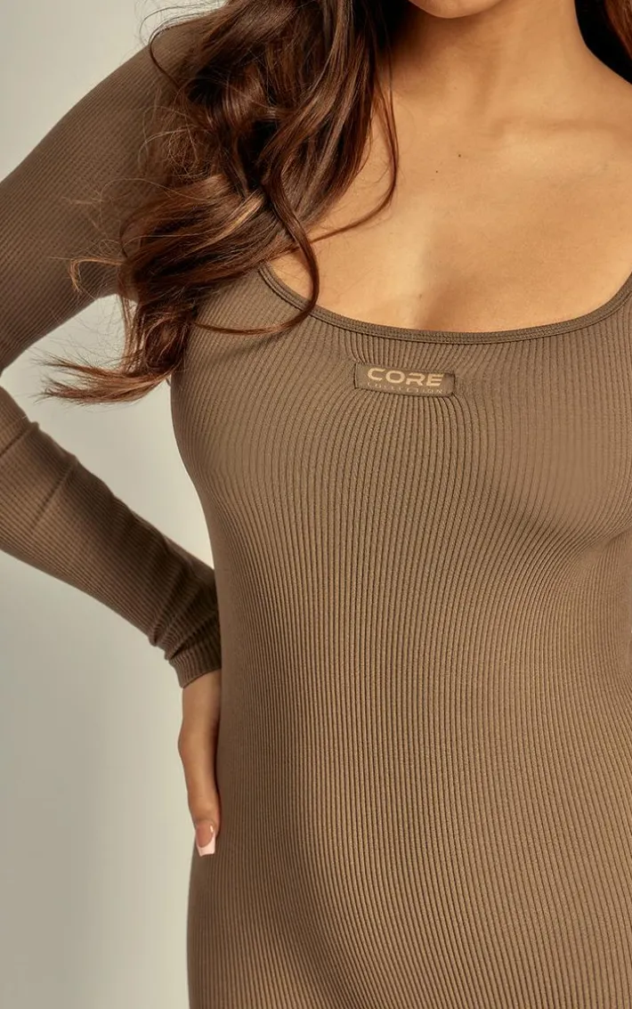 Step out in style with this mocha core collection tap snatched rib square neck long sleeve jumpsuit. This jumpsuit is brought to you in a mocha ribbed material with a square neck and a ‘Core Collection’ tab, what’s not to love? With its long sleeve design this jumpsuit is sure to be your new everyday staple. Wear with box-fresh kicks and your daily accessories for a look like no other.