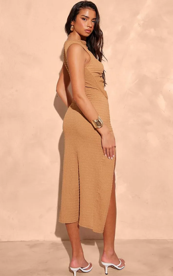 Elevate your wardrobe with this mocha crinkle high neck cut out midi dress. Brought to you in a mocha crinkle material with a high neck design, what more could you want? Its cut out detail and midi length is all you need to stand out from the rest. Team with your fave accessories to finish off the look we are loving.