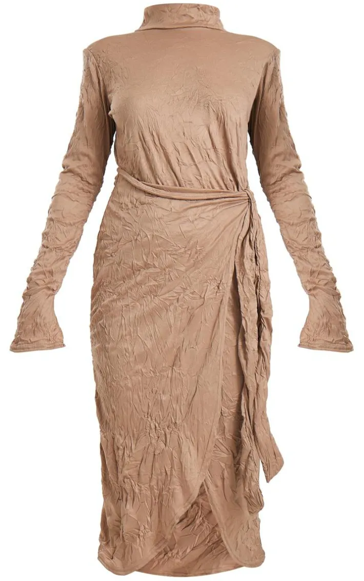 Found some last-minute weekend plans and need an unreal ‘fit? Then we have you covered with this styling staple, a mocha crinkle high neck wrap midi dress. With a mocha crinkle material with a high neck and a wrap front design, we’re obsessed. Work your styling techniques and add clear high heels and your gold accessories for a weekend-worthy finish that will gain all the likes.