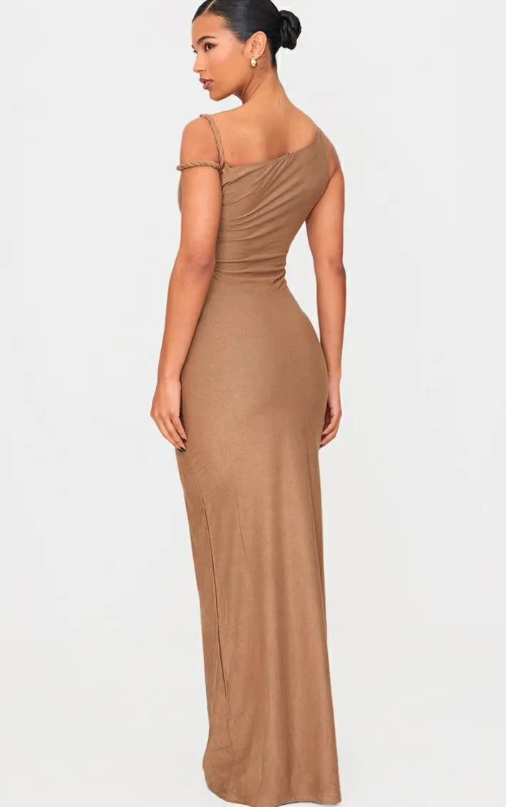 Be the best dressed in every room with this mocha faux suede twist shoulder maxi dress. Brought to you in a mocha faux suede material with a twist shoulder design and a maxi length, you won’t be able to resist. Team with a pair of heels and your fave gold accessories to finish off the look everyone is talking about.