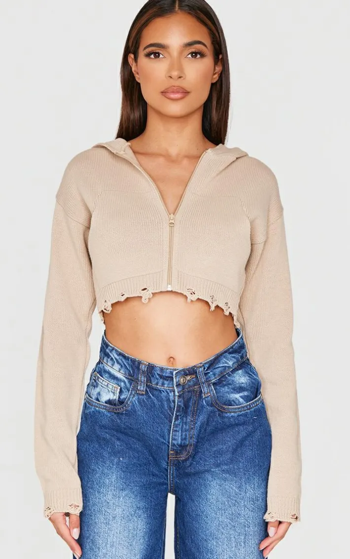 You can never have enough neutral knits for your new season wardrobe and we are loving this mocha knitted zip up distressed detail cropped sweater. Made from a mocha hue knitted material with a zip up design, distressed detailing and a cropped fit, what’s not to love? Pair this cropped sweater with comfy bottoms and accessories for a look that is perfect for everyday styling.