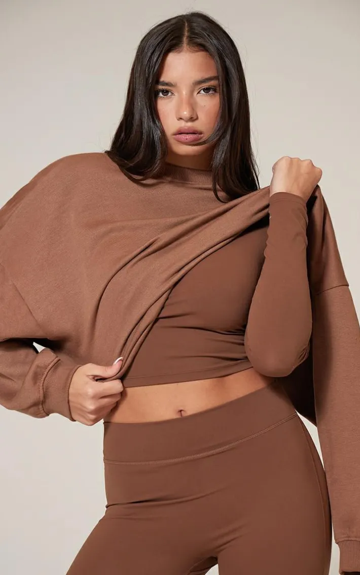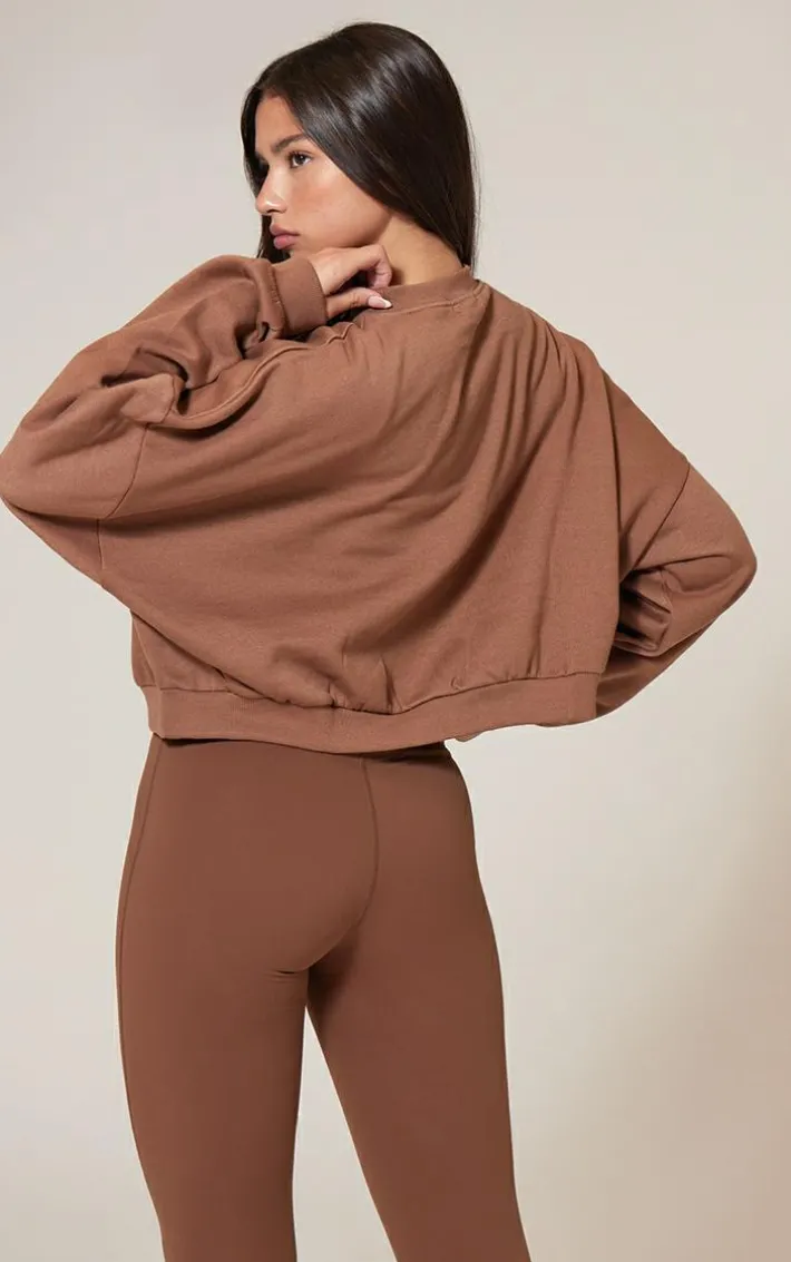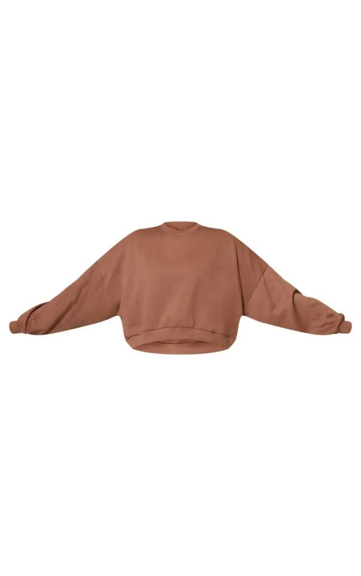 Hit refresh on your off-duty wardrobe with this mocha oversized boxy Sweatshirt. Brought to you in a mocha hue material with a boxy design and an oversized fit, what more could you want? This oversized Sweatshirt is sure to bring all the comfy vibes to those chilled days and beyond. Style with sweatpants and sneakers for the perfect on-the-go look.