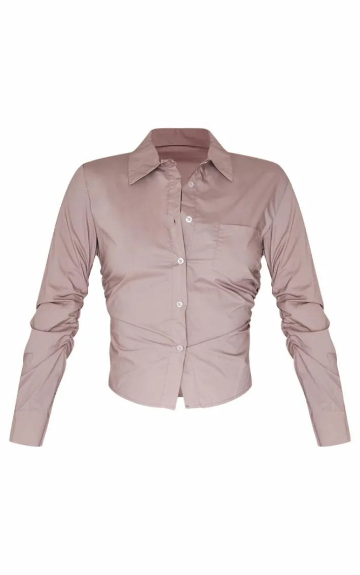 Elevate your mid week look with this mocha ruched side shirt. Brought to you in a mocha hue material with a ruched side detail, this shirt is all the new you need to stay on trend this season. Team with blue jeans, slip on heels and your go to accessories for a chic finish everyone will be talking about.