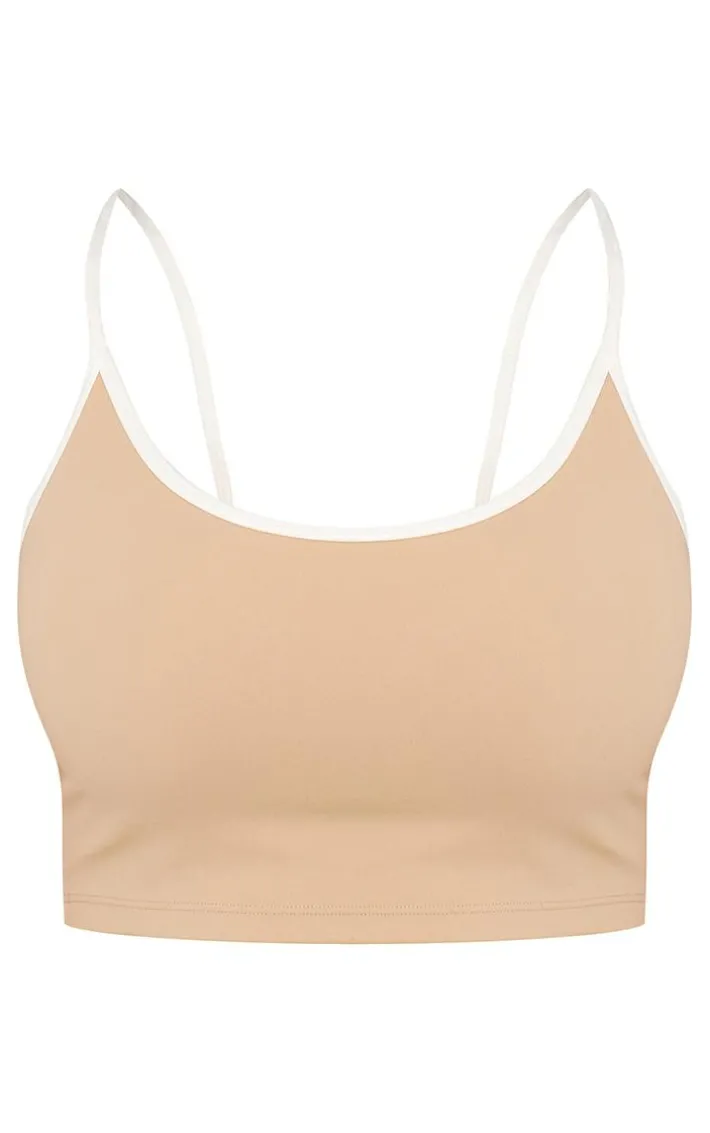 Bring all the neutral hues to your workout wardrobe with this mocha sculpt contrast detail strappy sports bra. Made from a mocha hue sculpt material with contrasting detail and thin straps, what more could you ask for? Team this sports bra with faux leather shorts, sneakers and statement accessories for a fierce off-duty ‘fit like no other.