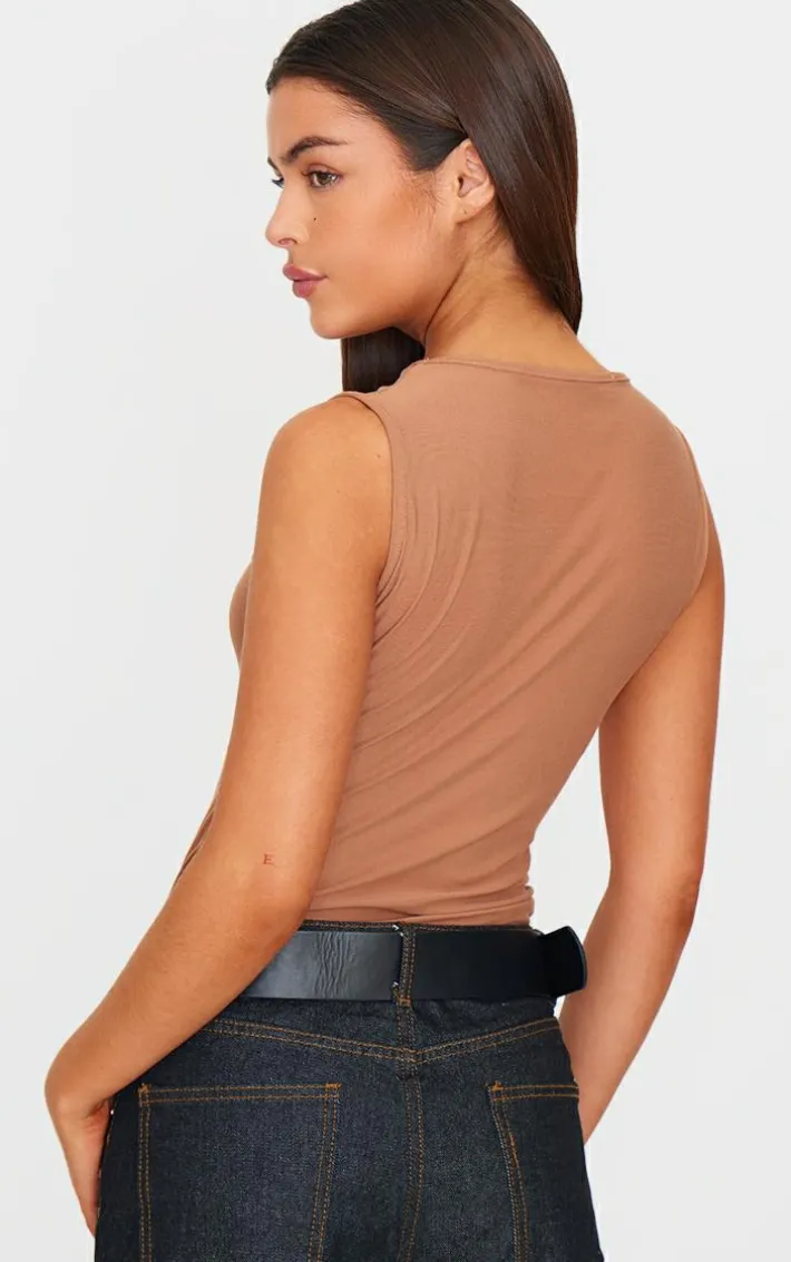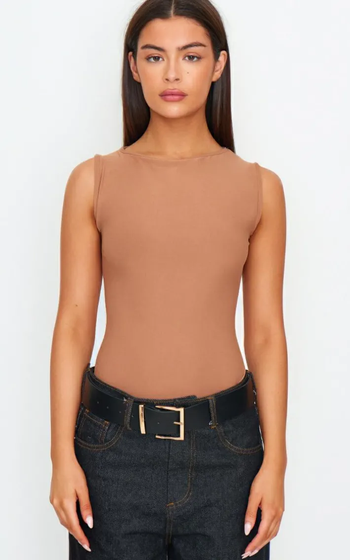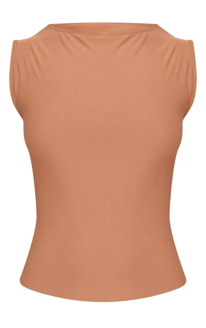 Amp up your basics collection with this mocha soft touch boatneck sleeveless top. Brought to you in a mocha hue soft touch material with a boatneck design and sleeveless detail, this top is everything you need and more. Team with jeans, a statement belt and fresh kicks for a chic off duty look everyone will be asking about.