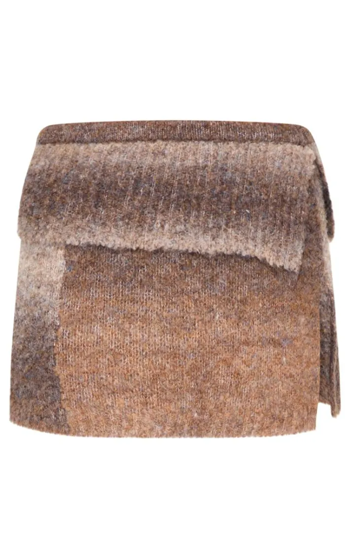 Introducing the mocha stripe textured knit fold over mini skirt, we’re obsessed. Brought to you in an unreal mocha shade, with stripe detailing, a textured knit material and fold over design, what more could you want? Style with the matching top, knee high heeled boots and gold earrings to really elevate the outfit.