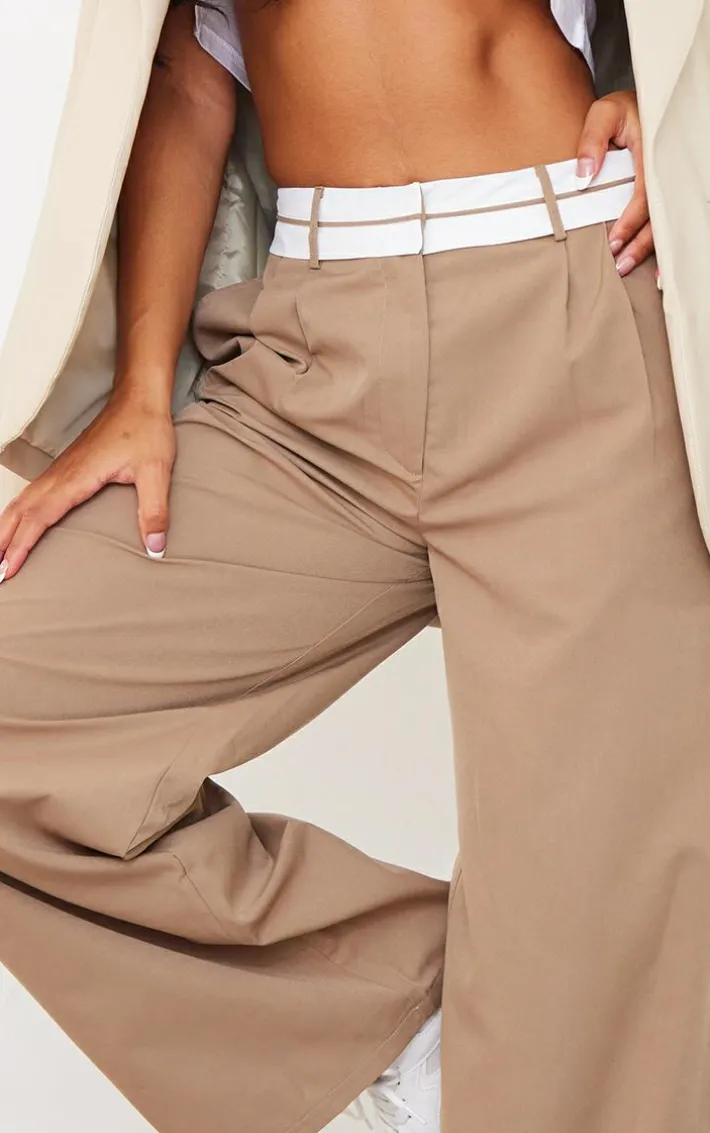 Add some chic vibes to your new season wardrobe with these bottoms. Featuring a mocha hue material with a turn over waist design and a straight leg fit, what’s not to love? Wear with a crop top, kicks and a blazer for a simple yet chic off-duty look.