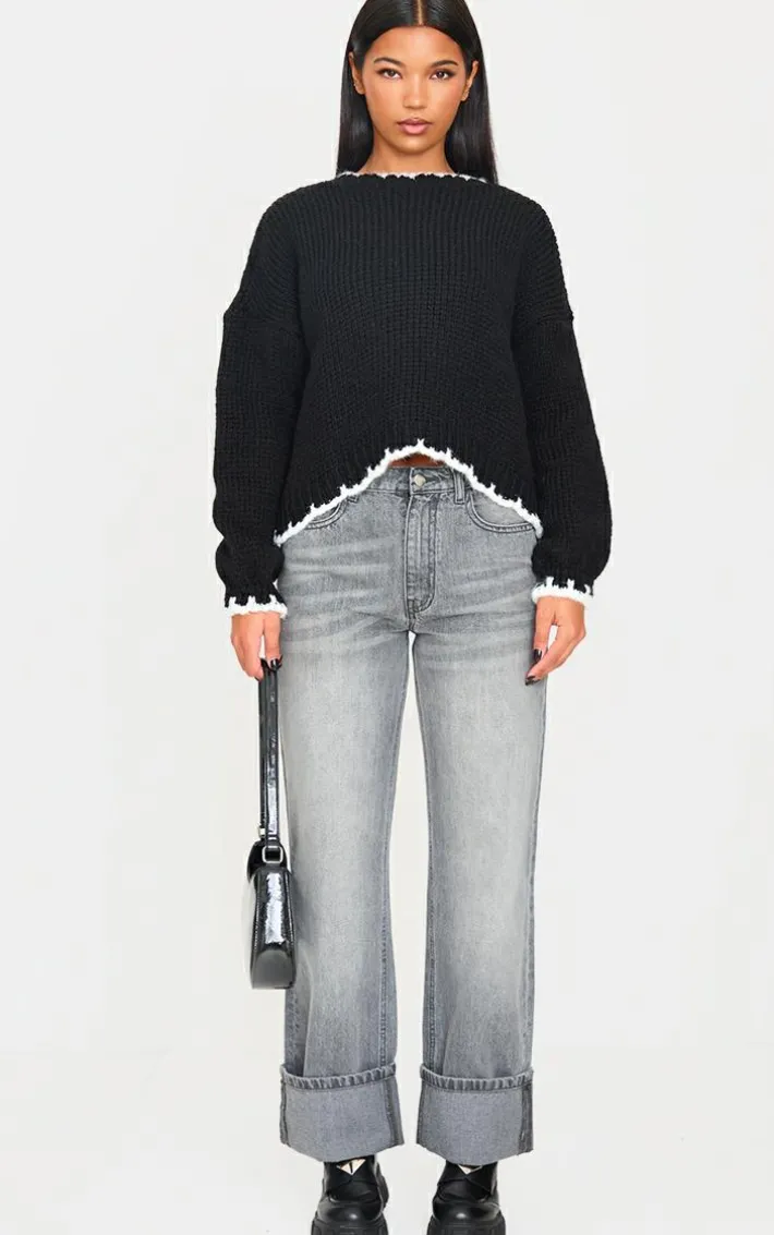 Stay cosy this season in this monochrome blanket stitch oversized knit sweater. Brought to you in a monochrome hue knit material with a blanket stitch design and oversized fit, this sweater is all the new you need. Style with grey jeans, chunky loafers and simple accessories for a look like no other.