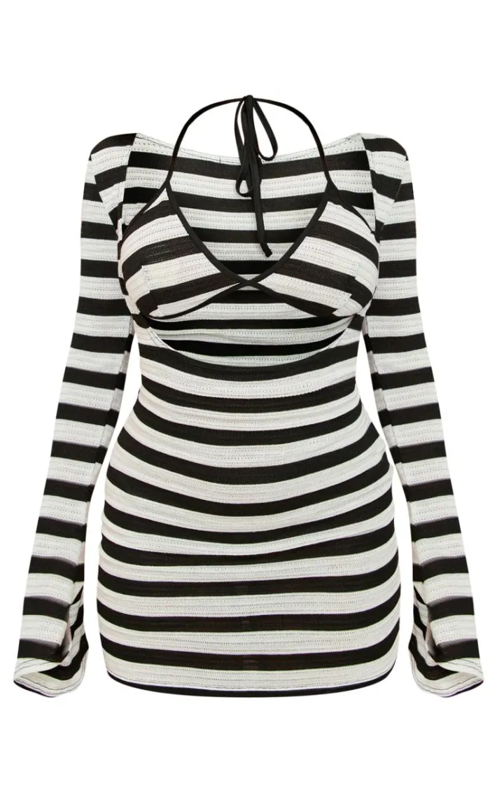 Amp up your style game this season with this monochrome cut out bralette bodycon dress. Brought to you in a monochrome material with a cut out bralette design, this bodycon dress is at the top of our wish list. Style with your fave flats and gold hoops for a chic finish we can’t get enough of.