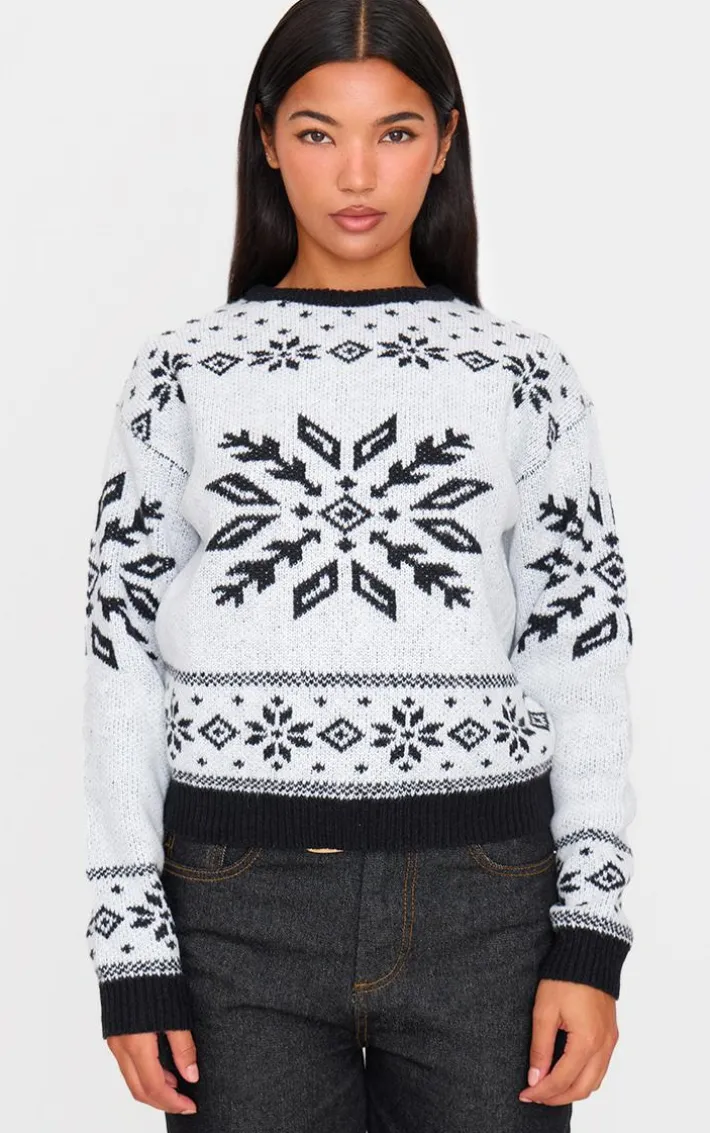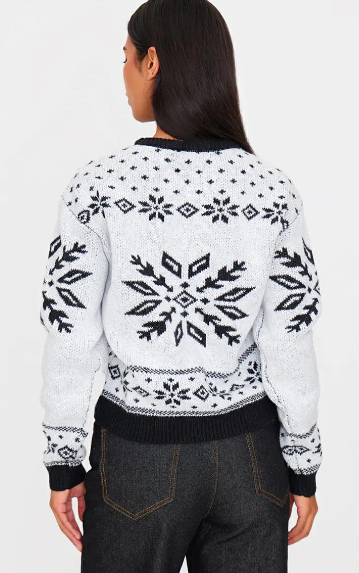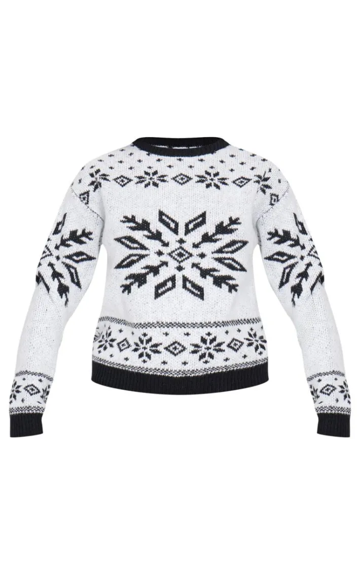 Stay in the festive spirit with this monochrome fairisle printed oversized knitted Christmas sweater. Brought to you in a versatile monochrome shade, with a fairisle printed design, flattering oversized fit and cosy knitted material, how can you say no? Simply team with a pair of jeans, simple accessories and ballet flats for a seasonal look like no other.