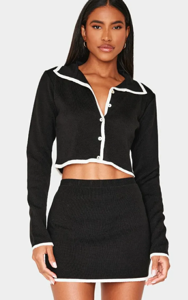 Elevate your knitwear collection with this monochrome knitted mini skirt. Brought to you in a monochrome hue knitted material with a mini length, how can you say no? Pair this mini skirt with the matching top, knee length boots and gold accessories for an effortlessly chic look that is sure to have all eyes on you.