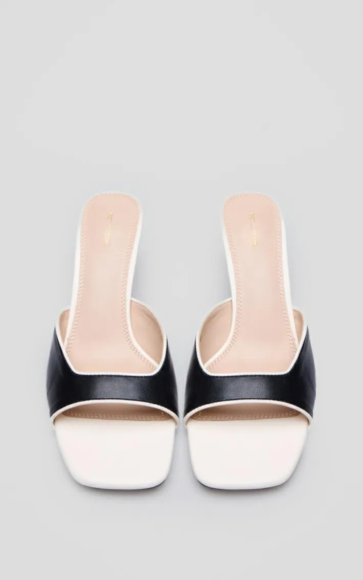 Give your weekend look a chic finishing touch with these monochrome PU square toe contrast heeled mules. Brought to you in a monochrome hue PU material with a square toe design and contrasting detailing, how can you say no? Style these heeled mules with your fave wardrobe pieces to instantly elevate your outfit.