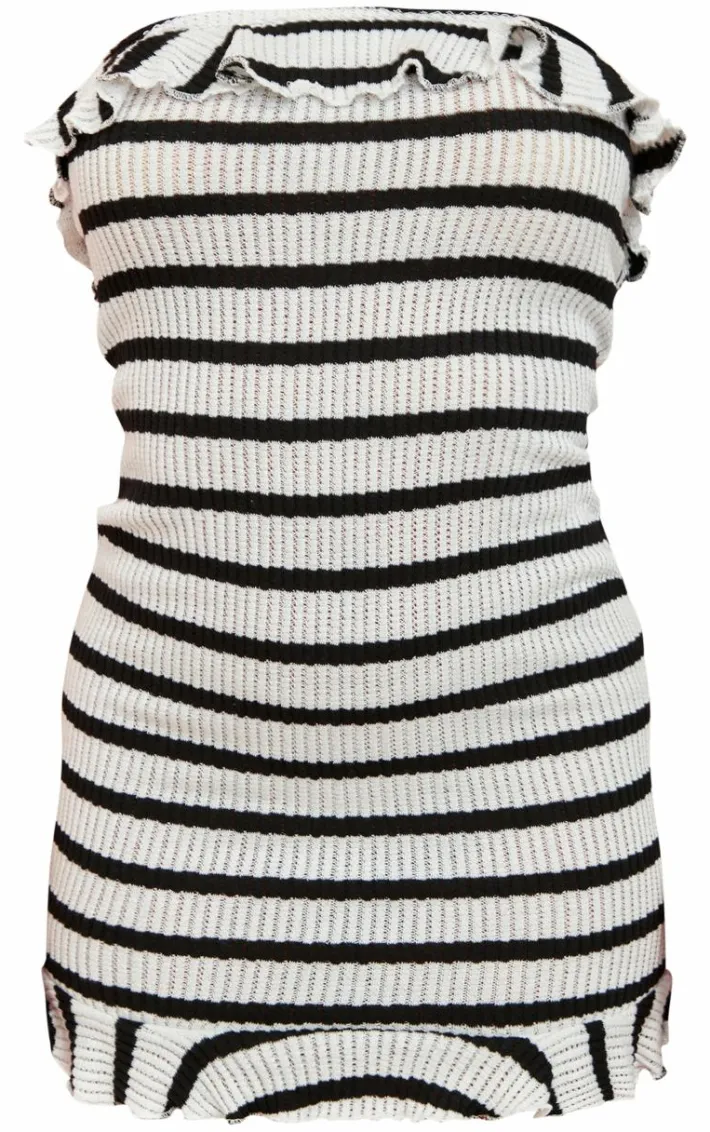 Take everyday styling to new heights with this monochrome striped bandeau frill hem textured bodycon dress. Brought to you in a monochrome hue textured material with a striped design, a bandeau neckline and a frill hem, we are obsessed. Style this bodycon dress with sandals and gold accessories for an effortless everyday look like no other.