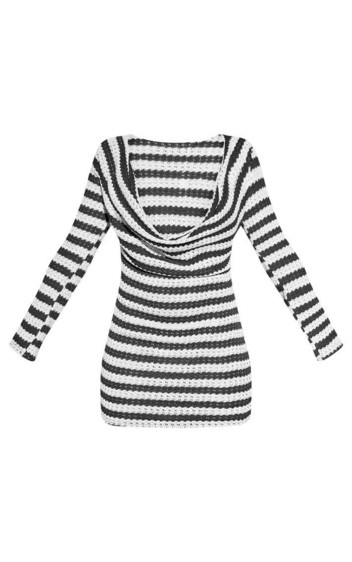 Upgrade your weekend wardrobe with this monochrome textured stripe cowl bodycon dress. Brought to you in a monochrome textured stripe material with a cowl neckline and bodycon style, how can you say no? Pair this dress with black flatforms and gold accessories for a look we’re loving this season.
