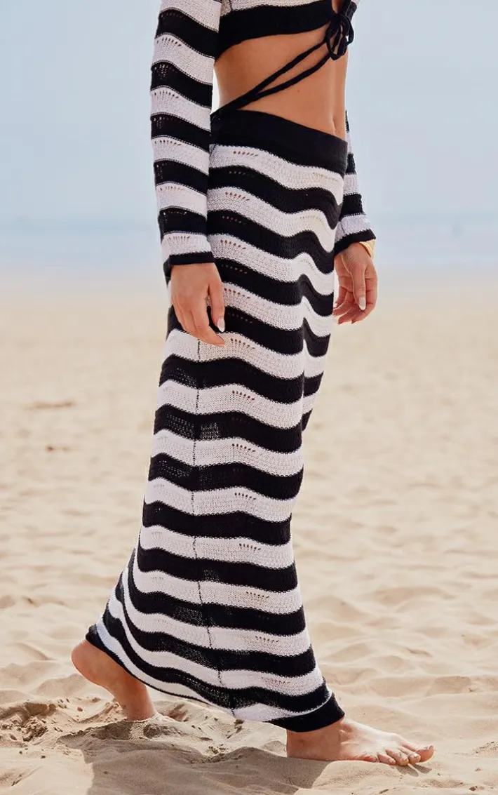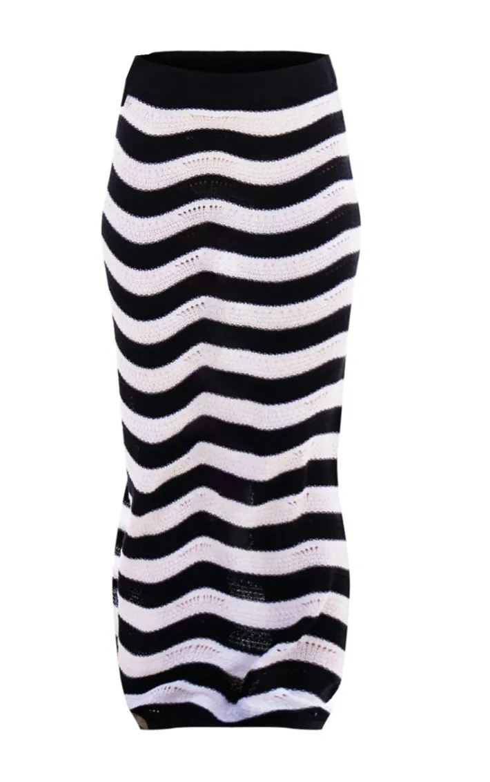 Take your look to a whole new level with this monochrome wave knit low rise maxi skirt. Brought to you in a monochrome wave knit material with a low rise design and a flattering maxi fit, how can you say no? Style this maxi skirt with the matching top, sandals and gold accessories for a look that is sure to make heads turn wherever you go.