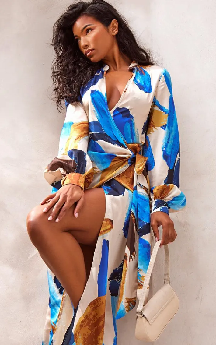 Make heads turn for all the right reasons in this multi abstract print satin wrap midaxi dress. This dress is brought to you in a multi hue for an insta-worthy look we are loving this season. With an abstract pattern, this dress will bring all the edge to your wardrobe , we are obsessed. Team this midaxi dress with some knee high cowboy boots and your fave accessories to take the look to new heights.