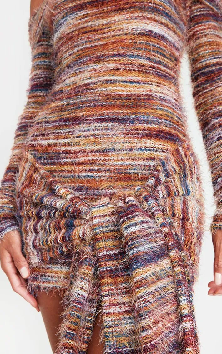 Bag this multi brushed textured bardot wrap detail bodycon dress to steal all the stares whatever your weekend plans. Brought to you in a must have multi shade, with a brushed textured material, a bardot design and wrap detail, this dress is sure to give a figure-flattering finish. Style with a pair of knee length boot heels and gold accessories to complete the look.