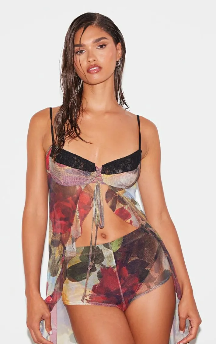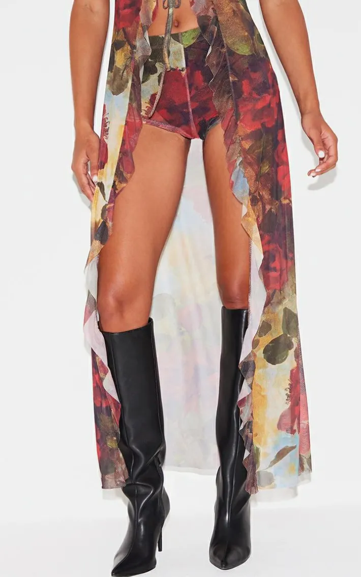 Make a statement in these multi floral printed mesh hot pants. Brought to you in a multi hue mesh material with a floral print design and a flattering fit like no other, how can you resist? Pair these hot pants with the matching top and knee length heeled boots for a look that will have eyes on you all night long.