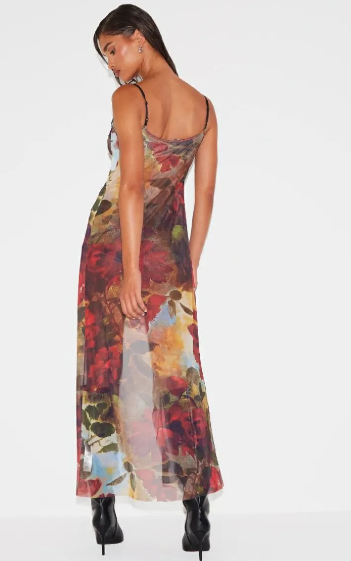 Bring all the drama to your weekend plans with this multi floral printed mesh ruffle tiered long bralet. Made from a multi hue mesh material with a floral print design, ruffle detailing and a longline style, how can you say no? Pair this mesh bralet effortlessly with the matching hotpans and knee length heeled boots for a weekend-worthy look to be remembered.