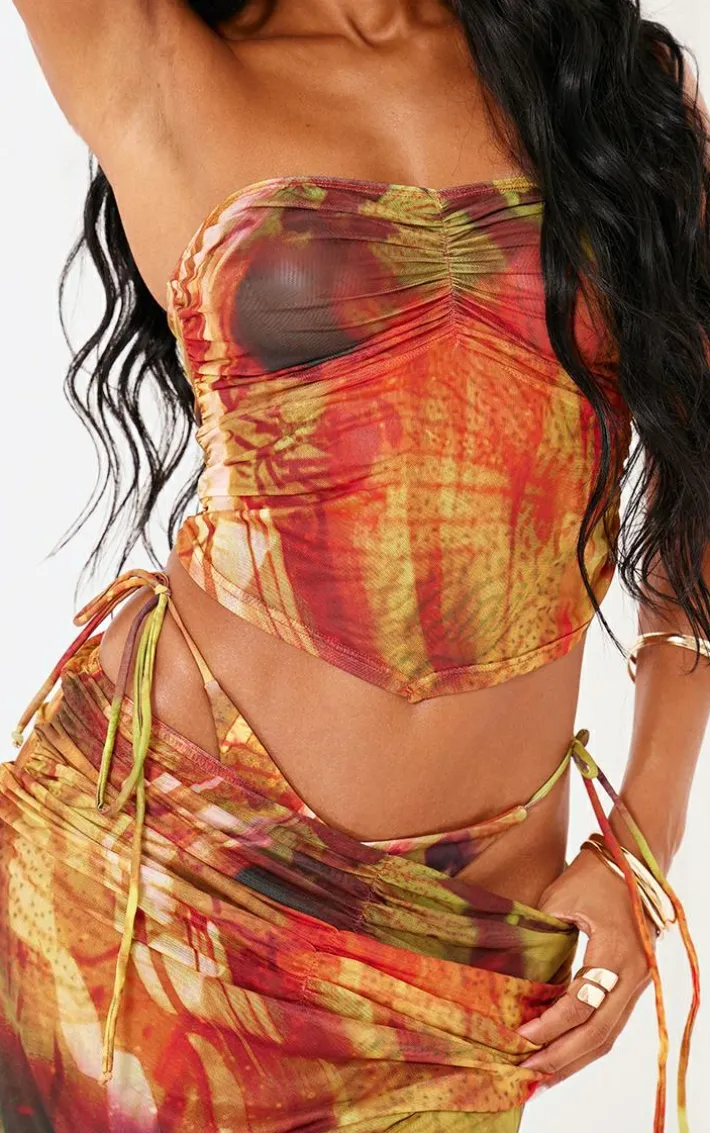 Stand out from the rest in this multi palm print mesh bandeau bandana beach top. Brought to you in a multi hue mesh material with a palm print design, a bandeau neckline and a bandana style, how can you resist? Pair this beach top with the matching skirt and bikini for a look that will really make a statement on your next vacay.