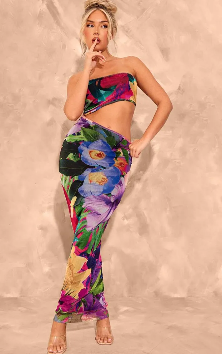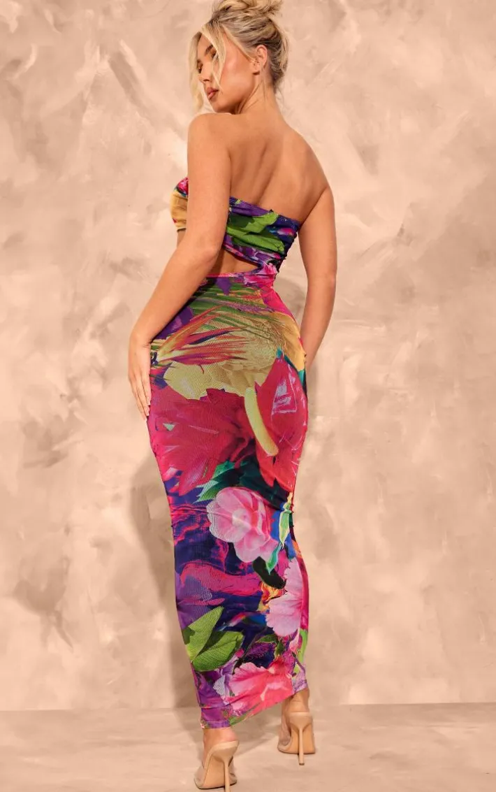 We’re totally in love with this multi print meshed cut out midaxi dress for your weekend plans. It is made from a multi print meshed material with a cut-out design and a midaxi length, how could you not be obsessed? This midaxi dress gives you endless styling potential and is bound to give your look that extra chic touch. Style seamlessly with the clear heels and gold accessories for a seriously luxe finish.