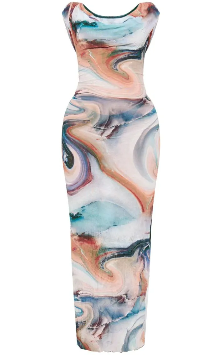 Inject some of this season’s must-have print into your wardrobe this season with this multi printed crinkle mesh cowl neck midi dress. Made from a multi printed crinkle material with a cowl neckline and a figure-hugging fit, how could you not be in love? Whatever your plans are this weekend, you are sure to earn all the compliments in this midi dress. Simply add strappy heels and gold accessories for a flawless finish.