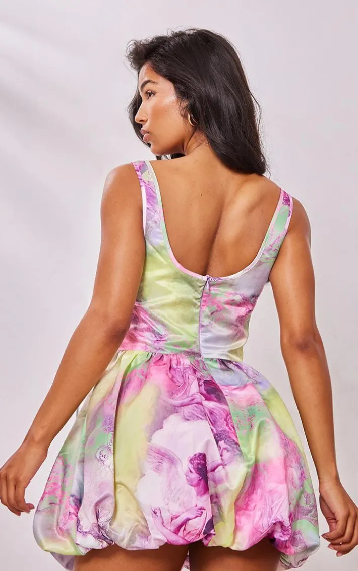 Make a statement this season with this multi renaissance print strappy corset puff ball dress. This unreal puff ball dress is brought to you in a multi material with a Renaissance print design that will have you feeling totally on trend. With a strappy detail and corset fit, you will be showing off your figure in all the right places. Team with some of your fave heels and your go-to earrings to finish off the look that will get you noticed.