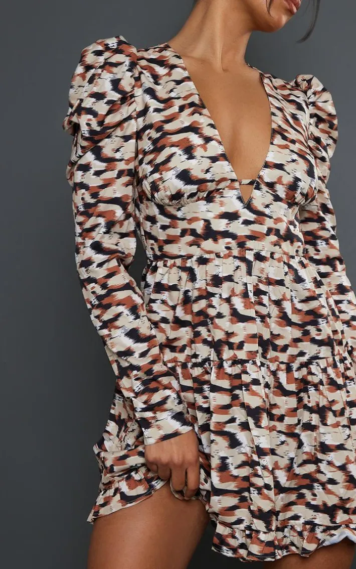 Add all the chic vibes to your wardrobe with this multi-smudge print puff sleeve frill hem tea dress. Brought to you in a multi-smudge print material with puff sleeves and a frill hem, how could you say no? Whether you have a wholesome walk in the sun or a brunch date in your diary this tea dress is the perfect choice. For that flawless finish, add western boots and your fave accessories.